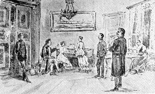 Musikafton i Wennerbergsgården. Teckning av Brynolf Wennerberg.