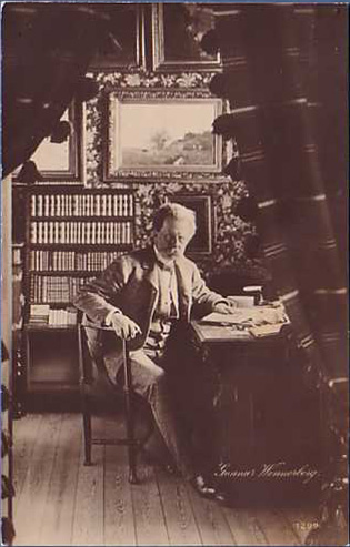 Wennerberg framför Läckö Slott i samband med ett besök på Läckö kungsgård.