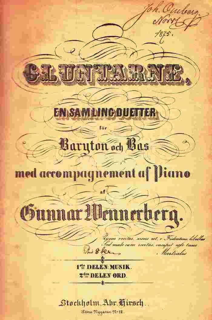 I åtta år gick Gunnar i skolan i Skara tills han 20 år gammal blev student i Uppsala och sedermera docent i konsthistoria. Det var under de här åren, som en av medlemmarna i den musikaliska sammanslutningen Juvenalerna, som han bland annat skrev huvuddelen av ”Gluntarne” – 30 sångduetter för baryton och bas som mer än något annat gjort Gunnar Wennerberg känd och berömd.